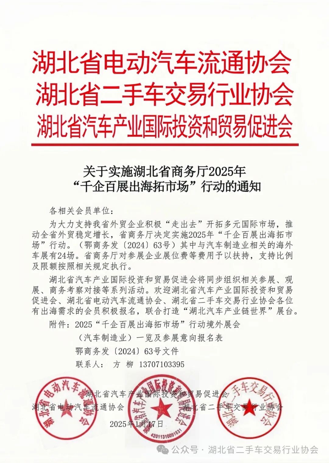 关于实施湖北省商务厅2025年“千企百展出海拓市场”行动的通知